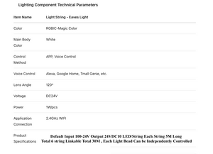 M0796-M.T.C Canada LED Permanent Christmas Lights /Smart Outdoor Lights Waterproof Smart LED Eaves Lighting 24VDC 100 Feet Each Set 5M ( 10 LED ) 30 M Total 60 LED With Plug In 2.4G wifi 120VAC CETL